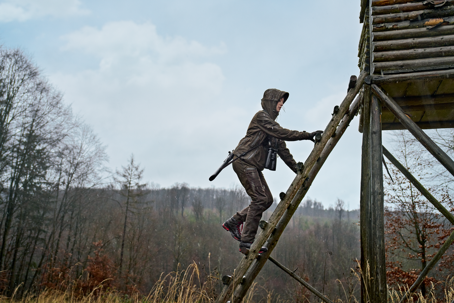 I pantaloni Aspire HWS da donna combinano resistenza, silenziosità e protezione dalle intemperie. Sono dotati della membrana Härkila Weather System (HWS), completamente antivento, impermeabile (20.000 mm di colonna d'acqua) e altamente traspirante, che ti mantiene asciutto e comodo anche in condizioni meteorologiche imprevedibili. I pantaloni sono realizzati in robusto e silenzioso tessuto tricot con trattamento idrorepellente a lunga durata (DWR), che li rende resistenti a sporco e acqua, consentendo al contempo movimenti silenziosi. All'interno, una fodera in rete traspirante garantisce il comfort durante le battute di caccia più intense. Le pratiche caratteristiche includono tasche ad accesso dall'alto, tasche sulle cosce con cerniere impermeabili e un portacartucce nella tasca sulla coscia destra. Grazie ai cinturini regolabili alla caviglia e alle regolazioni per le ginocchia, questi pantaloni offrono una vestibilità sicura intorno agli scarponi e una maggiore libertà di movimento, anche su terreni ripidi.